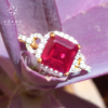 Be the first to review “Square Ruby Ring with halo and half-studded Band” Cancel reply